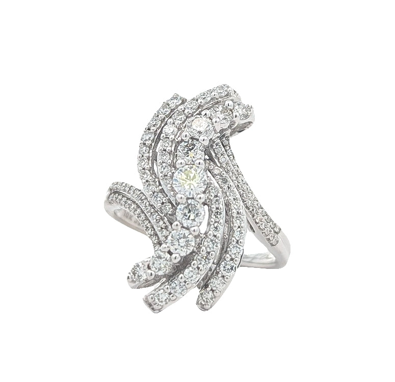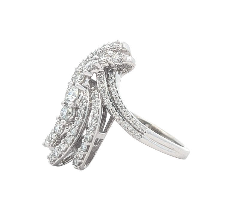 10KT White Gold 0.91ctw Diamond Estate Cluster Ring size 6.5