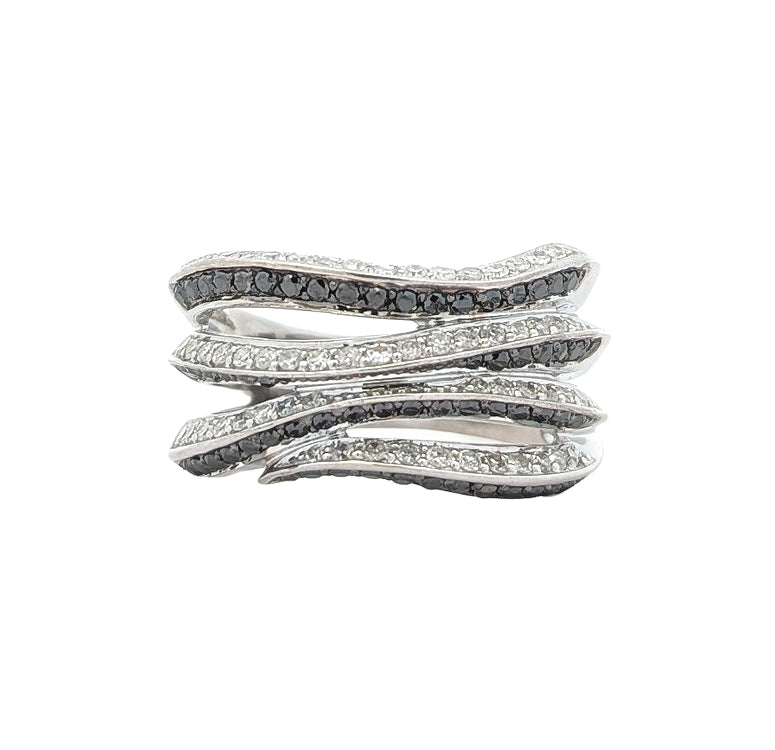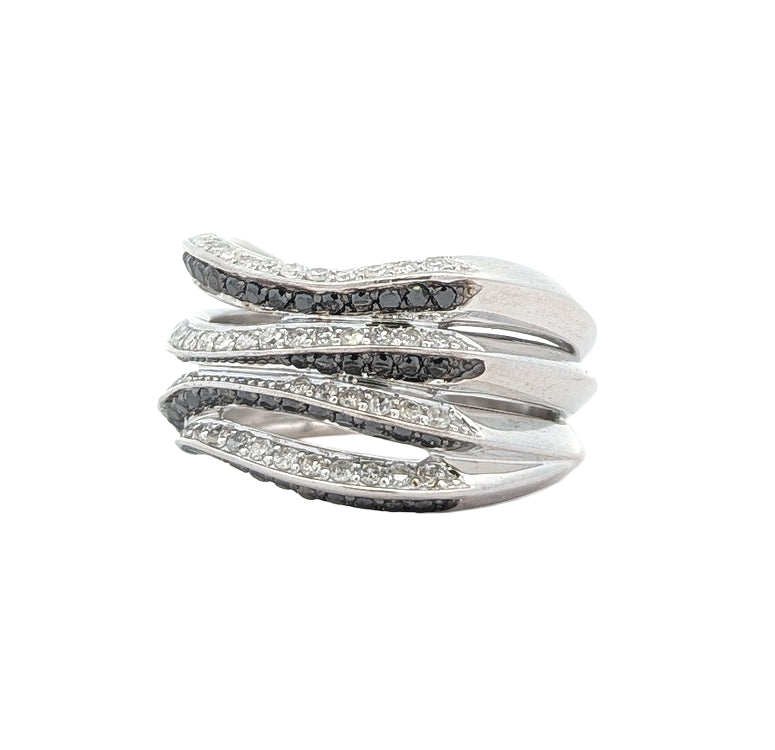 10KT White Gold 1.36ctw Black and White Diamond Estate Ring size 7.25