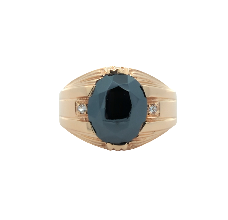 10KT Yellow Gold Natural Hematite and CZ Estate Ring size 9.5