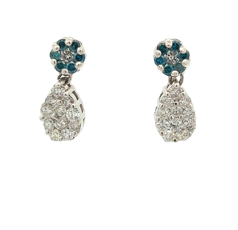 14KT White Gold 1.53ctw Blue and White Diamond Estate Drop Earrings