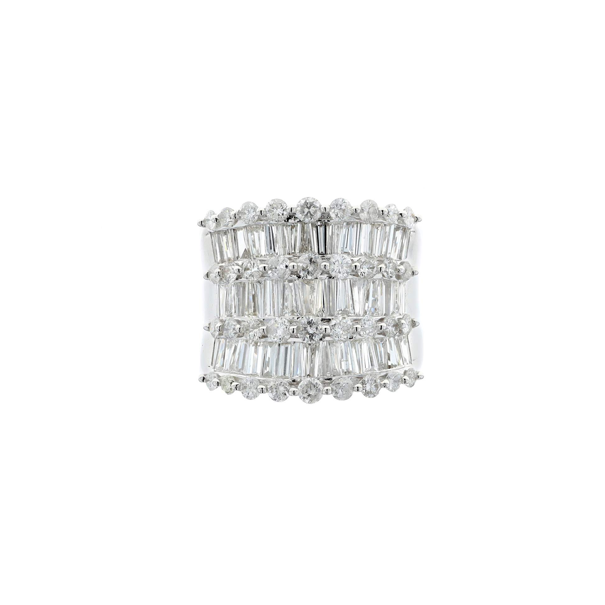 Fifty-three channel set baguette cut (tapered) diamonds, measuring 3.50 x 1.70 x 1.45mm (depth est.) approximate total weight of 53 Stones = 2.60ct. One diamond is chipped.