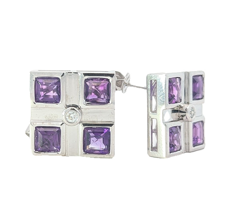 14KT White Gold Natural Amethyst and 0.11ctw Diamond Estate Earrings