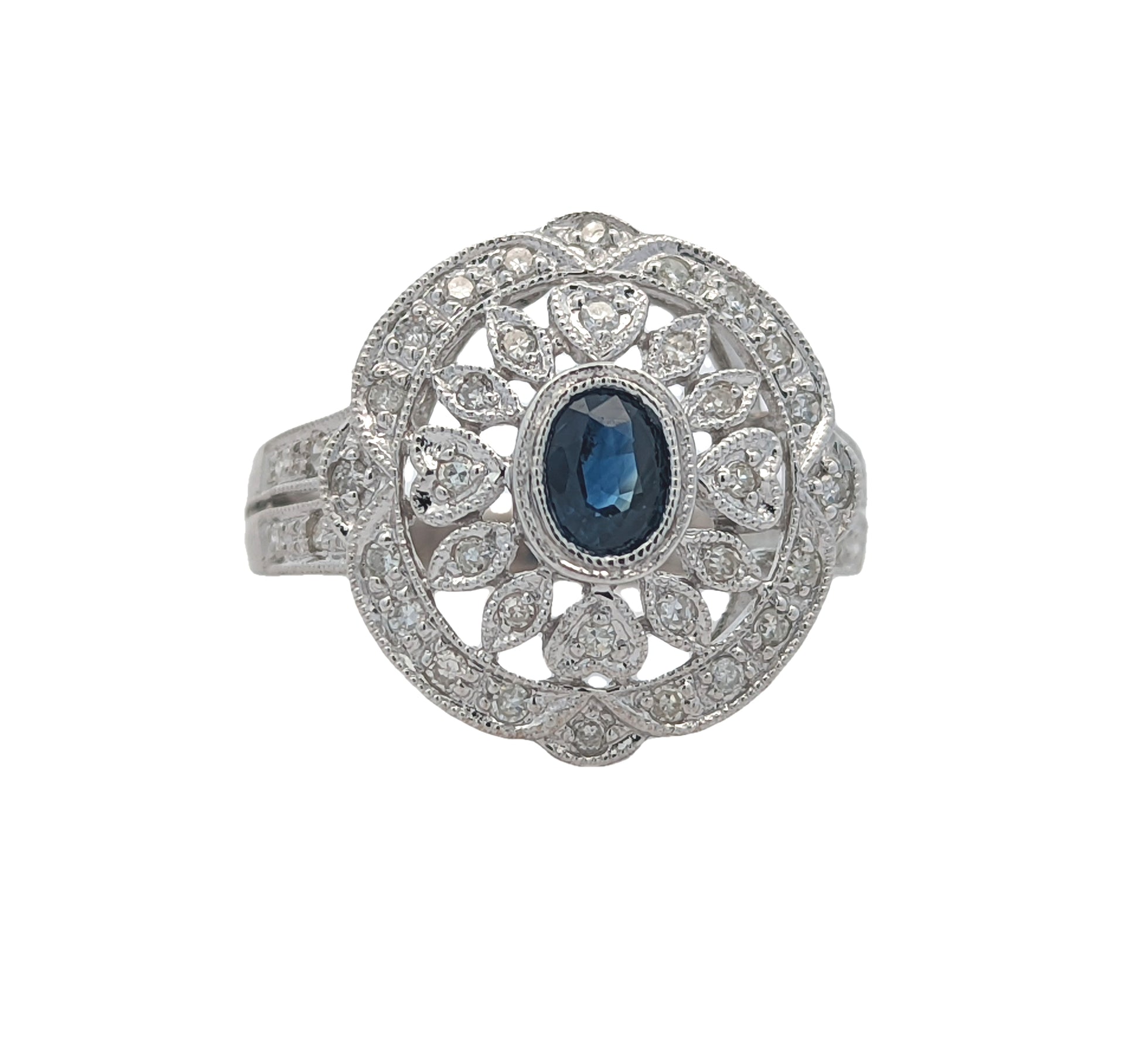 14KT White Gold Natural Blue Sapphire and 0.21ctw Diamond Estate Ring size 7
