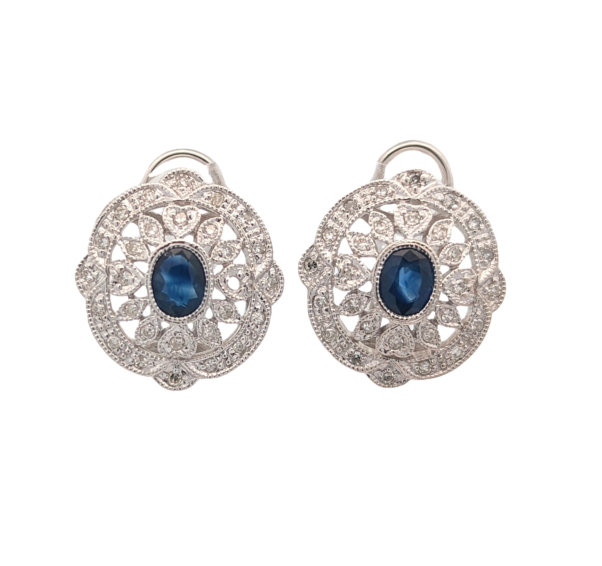 14KT White Gold Natural Blue Sapphire and 0.25ctw Diamond Estate Earrings