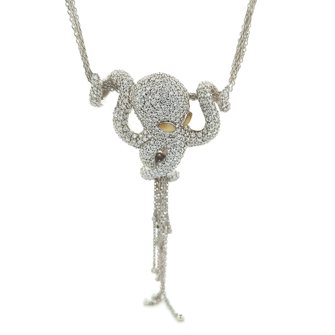 14KT White Gold Natural Chrysoberyl and 7.74ctw Diamond Octopus Estate 18" Necklace