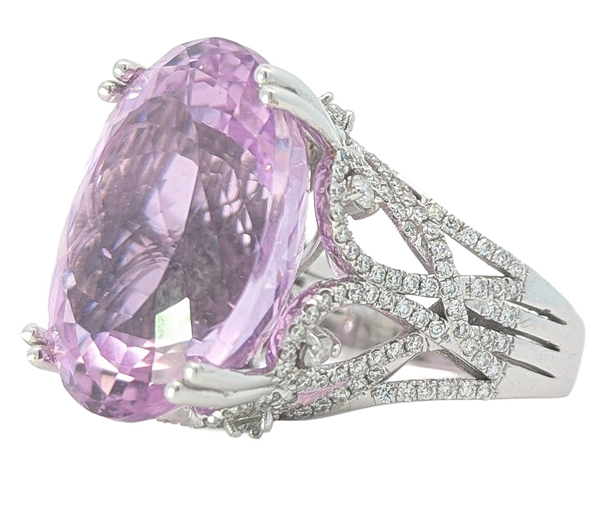 14KT White Gold Natural Kunzite and 0.76ctw Diamond "Primus" Estate Ring size 8
