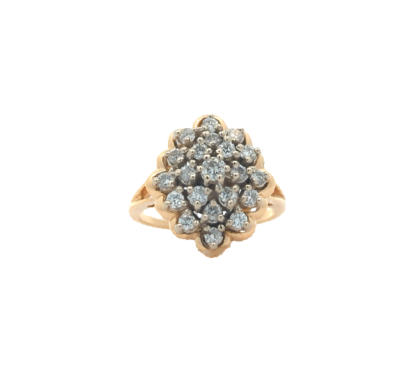 14KT Yellow and White Gold 0.65ctw Diamond Estate Cluster Ring size 7.5