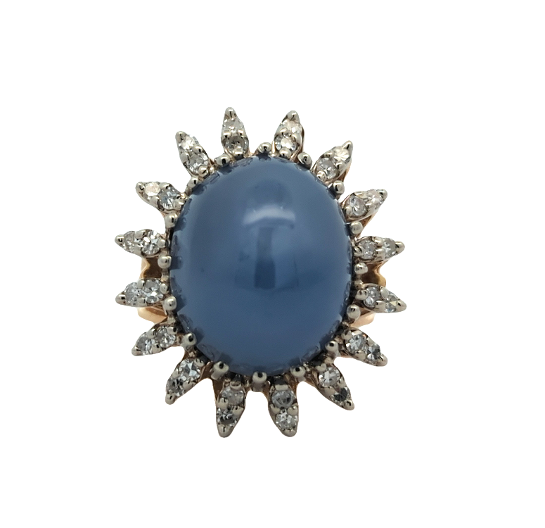 14KT Yellow and White Gold Natural Blue Star Sapphire and 0.34ctw Diamond Estate Ring size 4.75