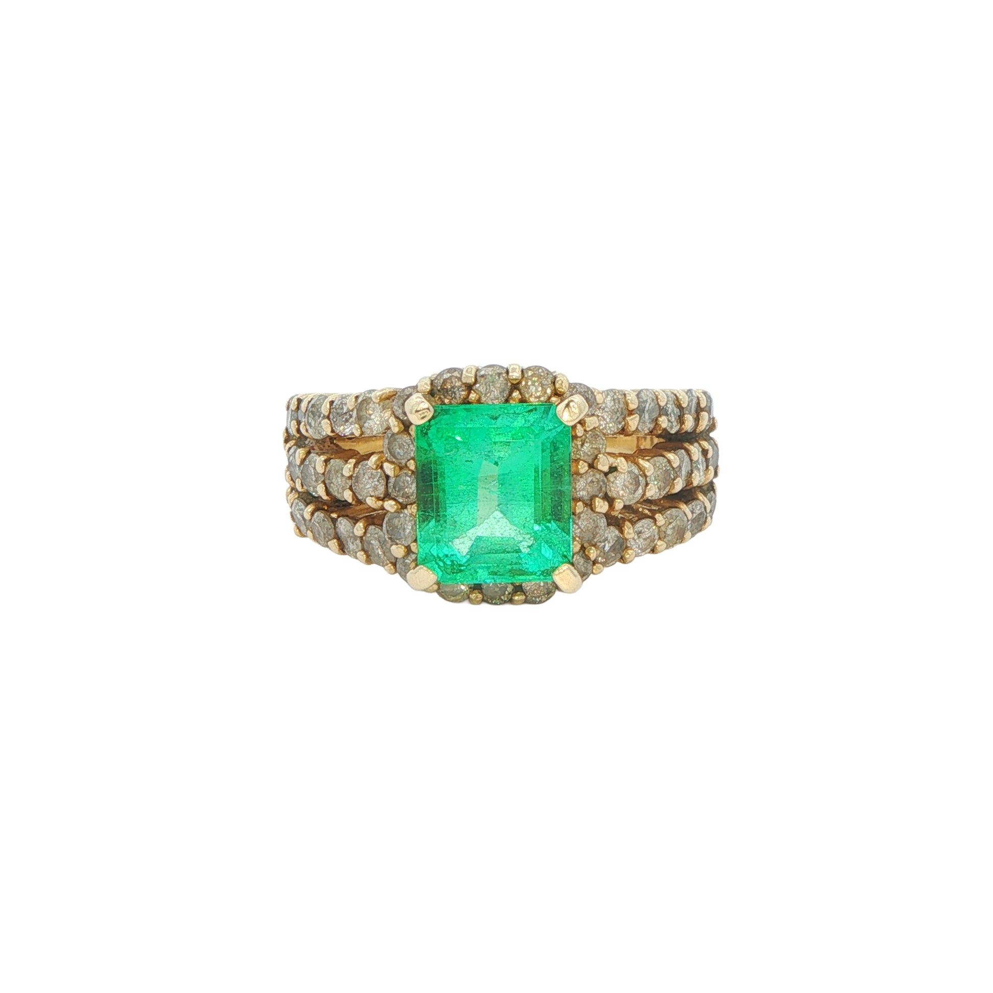 14KT Yellow Gold Emerald 1.40ctw Diamond Estate Ring size 6
