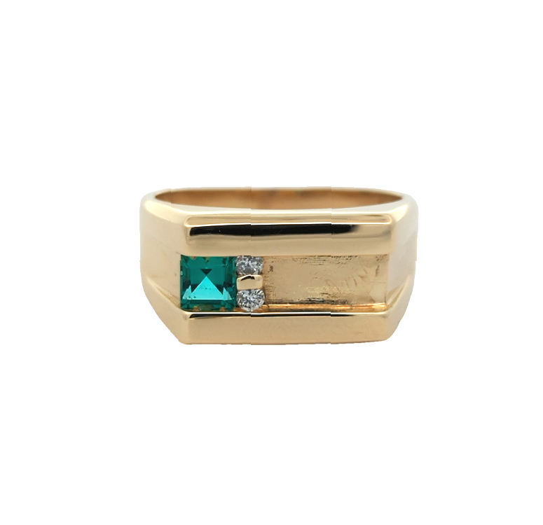 14KT Yellow Gold Lab Grown Emerald and 0.07ctw Diamond Estate Ring size 9.5