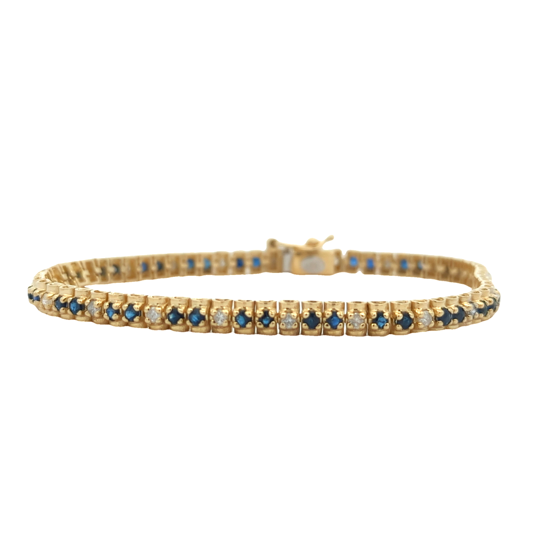 14KT Yellow Gold Natural Blue Sapphire and 0.65ctw Diamond Estate 7" Bracelet
