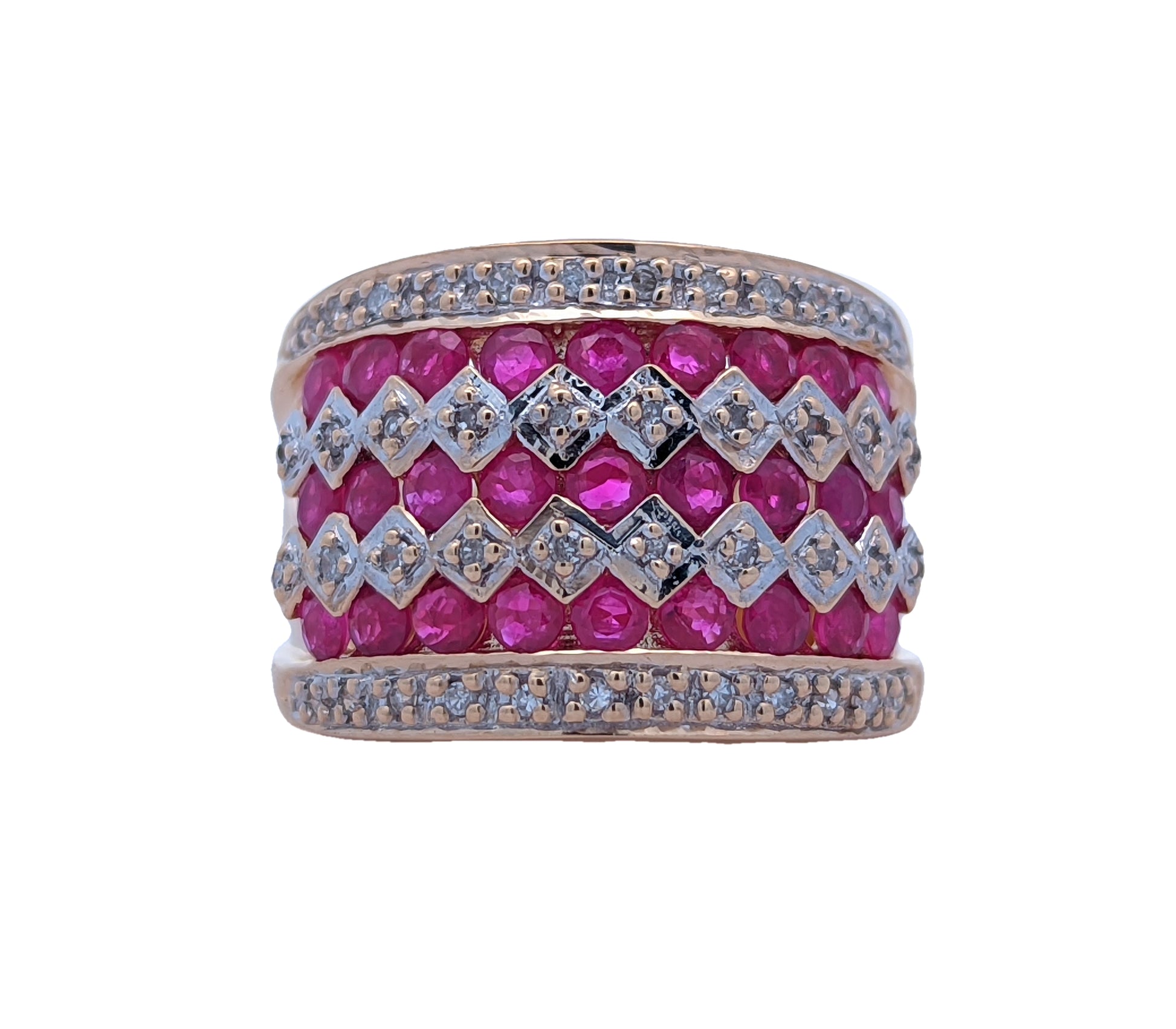 14KT Yellow Gold Natural Ruby and 0.17ctw Diamond Estate Ring size 6