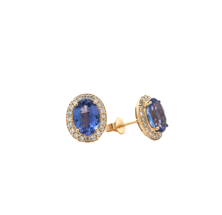 14KT Yellow Gold Natural Tanzanite and 0.30ctw Diamond Estate Stud Earrings