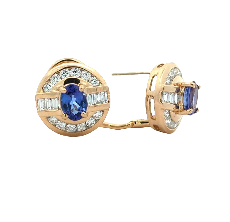 14KT Yellow Gold Natural Tanzanite and 1.21ctw Diamond Earrings