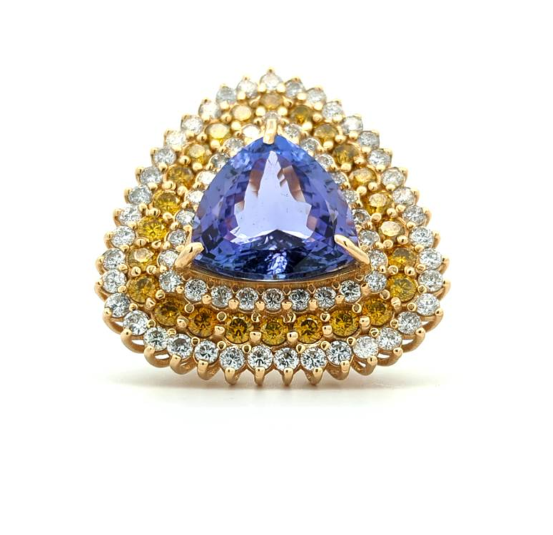 14KT Yellow Gold Natural Tanzanite and 5.93ctw Diamond Estate Ring size 7
