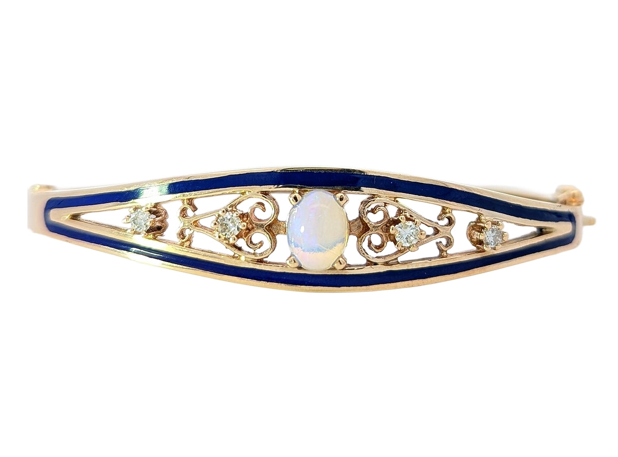 14KT Yellow Gold Opal and 0.18ctw Diamond Hinged Estate Bangle