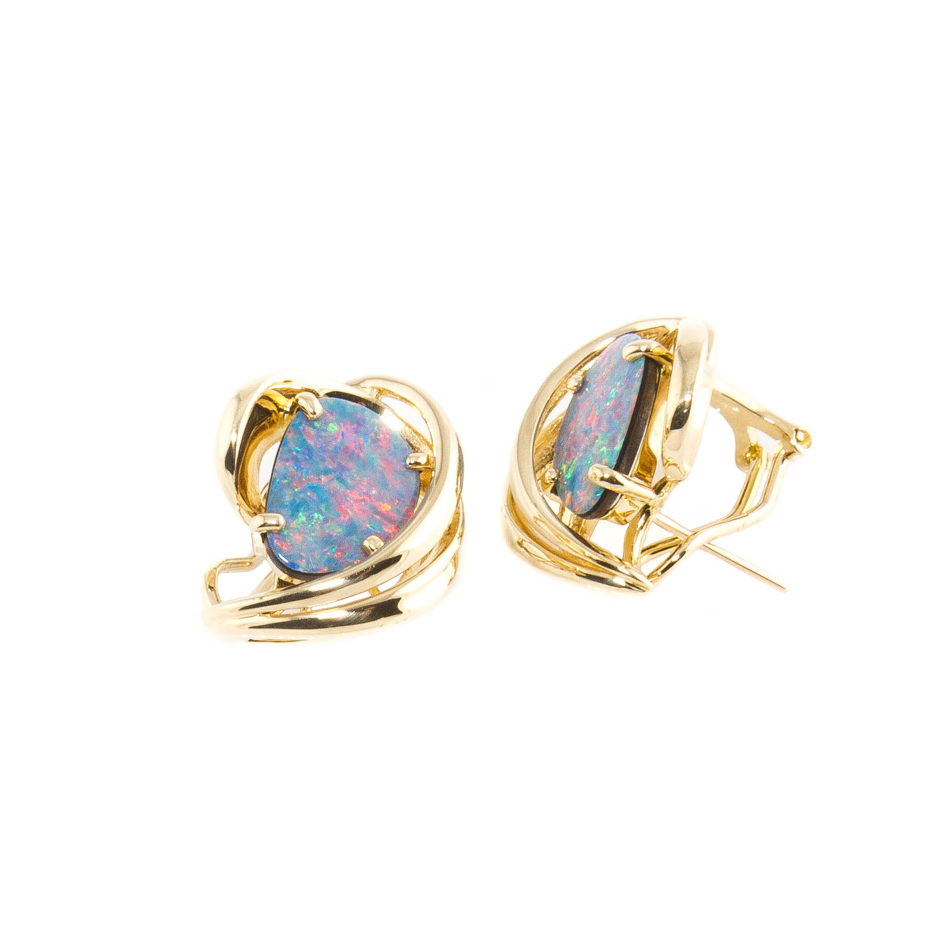 14KT Yellow Gold Opal Triplet Estate Earrings