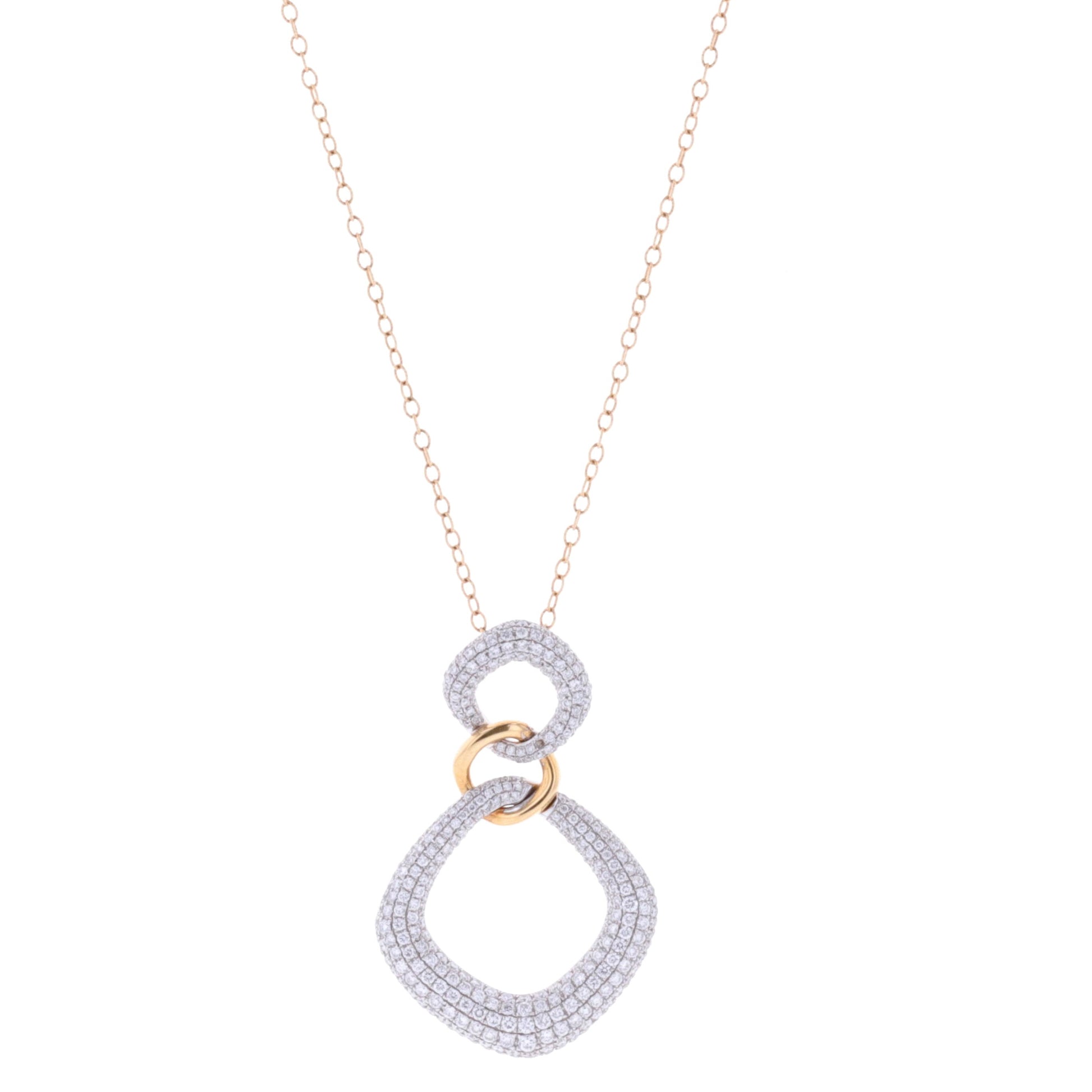 One set stamped 18KT white and yellow gold lady's hand assembled custom made diamond fancy pendant and chain 17" long, light cable with a lobster claw clasp with a high polish finish.