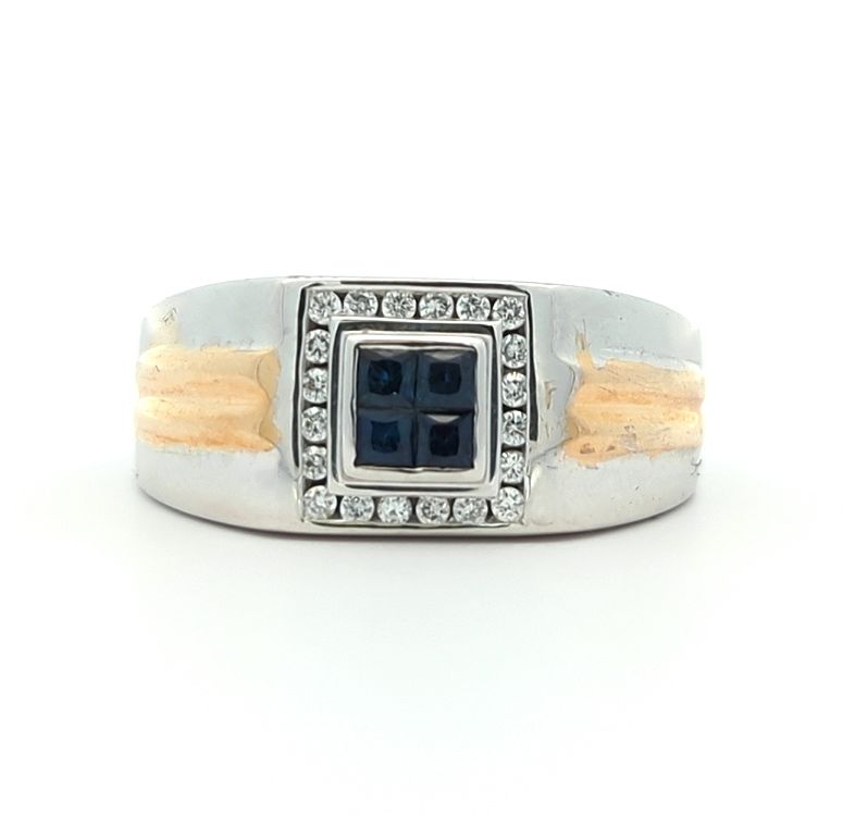 18KT White and Yellow Gold Natural Blue Sapphire and 0.20ctw Diamond Estate Ring size 10.5