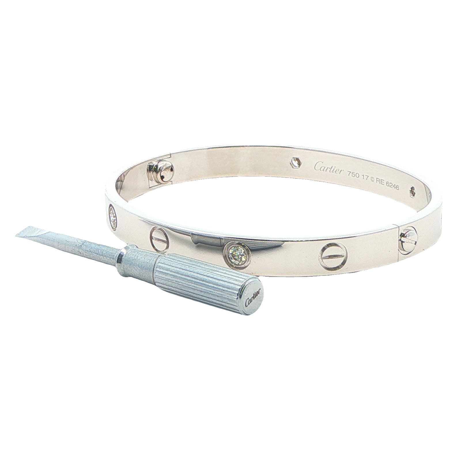 18KT White Gold Authentic "Cartier" 0.20ctw Diamond Estate Love Bracelet
