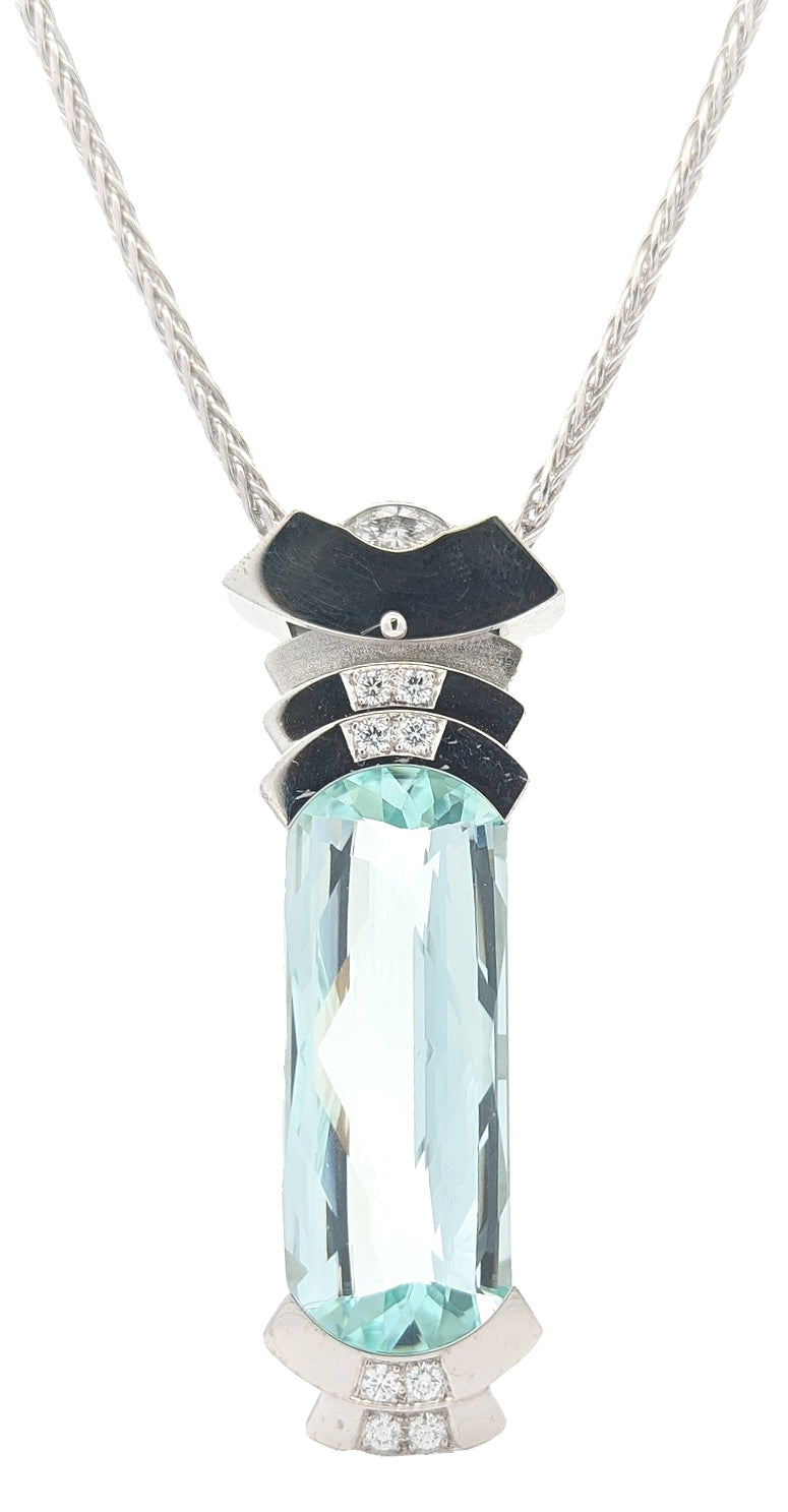18KT White Gold Natural Aquamarine and 0.60ctw Diamond 18" Estate Necklace