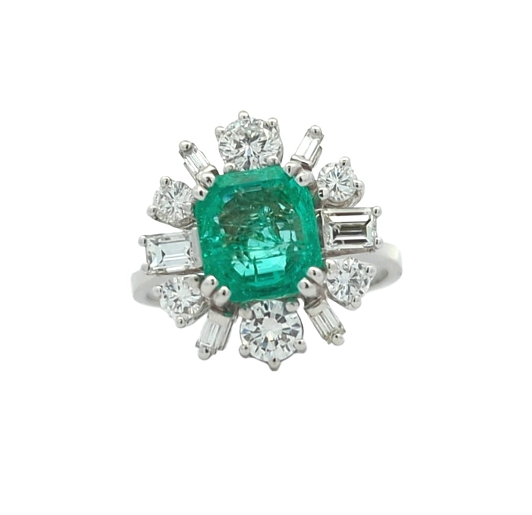 18KT White Gold Natural Emerald and 1.34ctw Diamond Estate Ring size 8