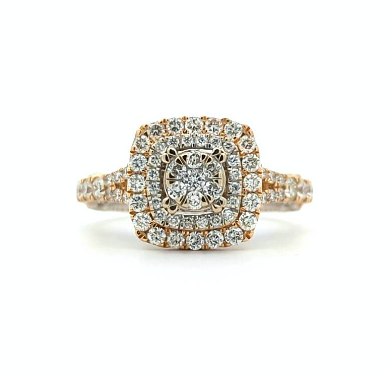 18KT Yellow and White Gold 1.22ctw Diamond Cluster Estate Ring size 6.75
