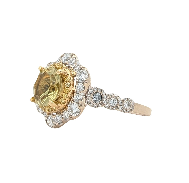 18KT Yellow and White Gold Natural Citrine Quartz and 1.20ctw Diamond Estate Ring size 6.25