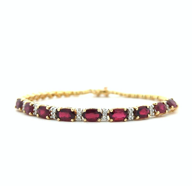 18KT Yellow and White Gold Natural Ruby and 0.19ctw Diamond Estate Bracelet