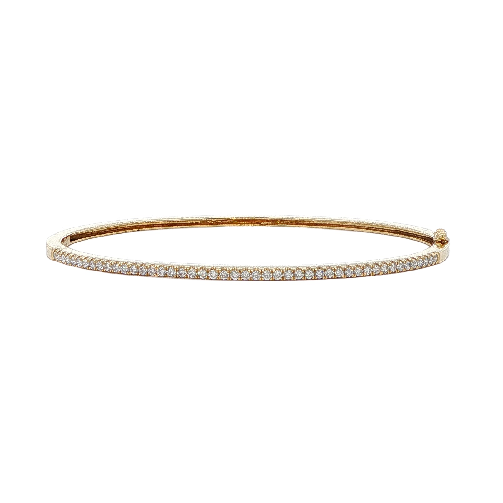 One stamped 18KT yellow gold hand assembled custom made diamond hinged bangle with a high polish finish. The bangle is secured with a custom hidden clasp and a safety eight clasp. Containing: