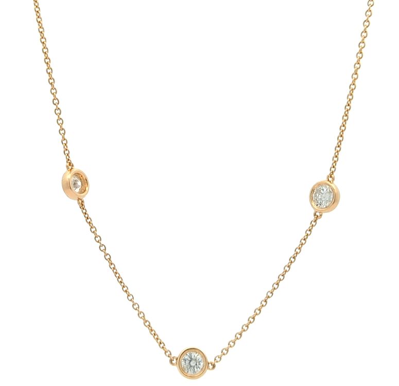 One stamped 18KT yellow gold hand assembled custom made 36" diamond by the yard necklace with a lobster claw clasp and a high polish finish.