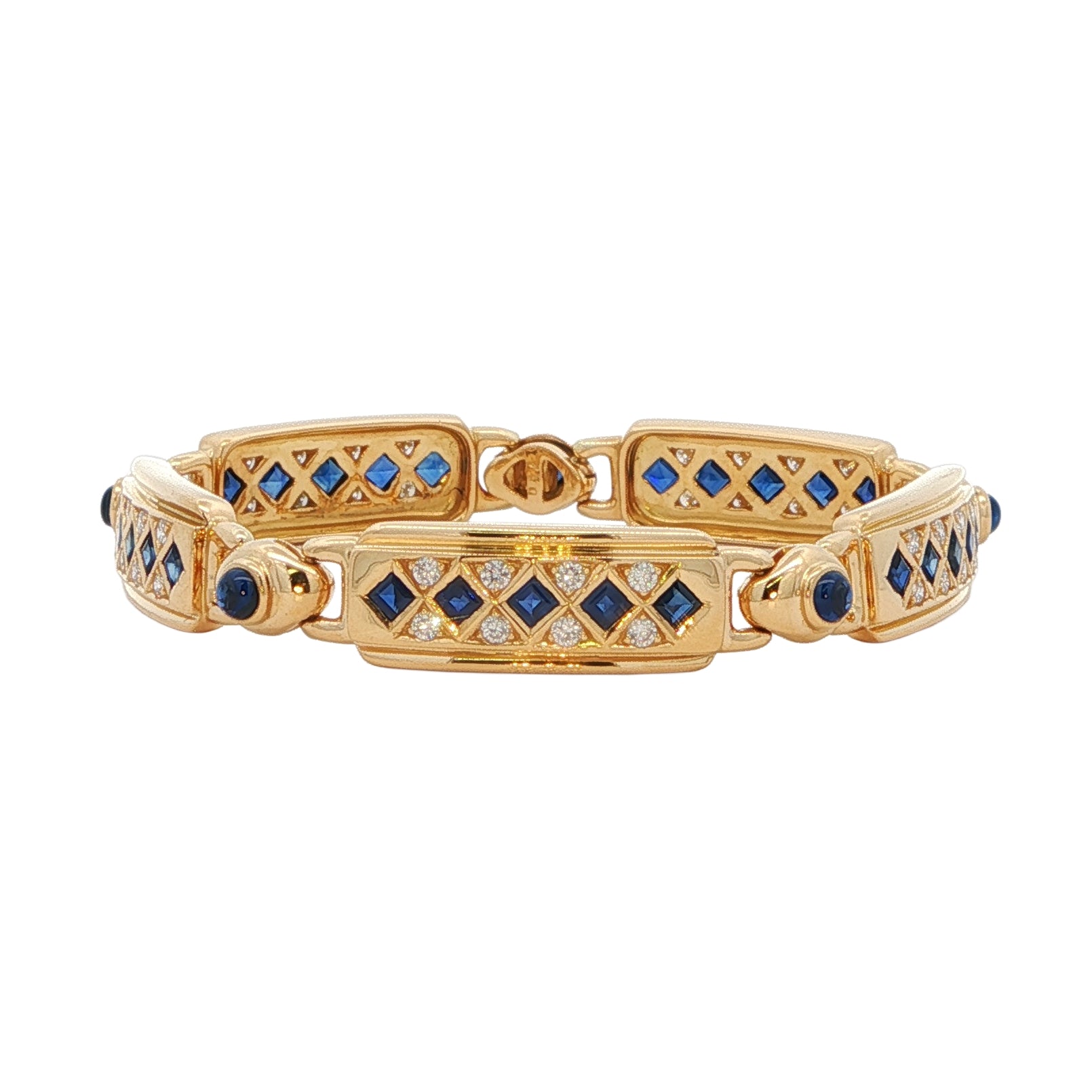18KT Yellow Gold Natural Blue Sapphire and 0.82ctw Diamond Estate 7" Bracelet