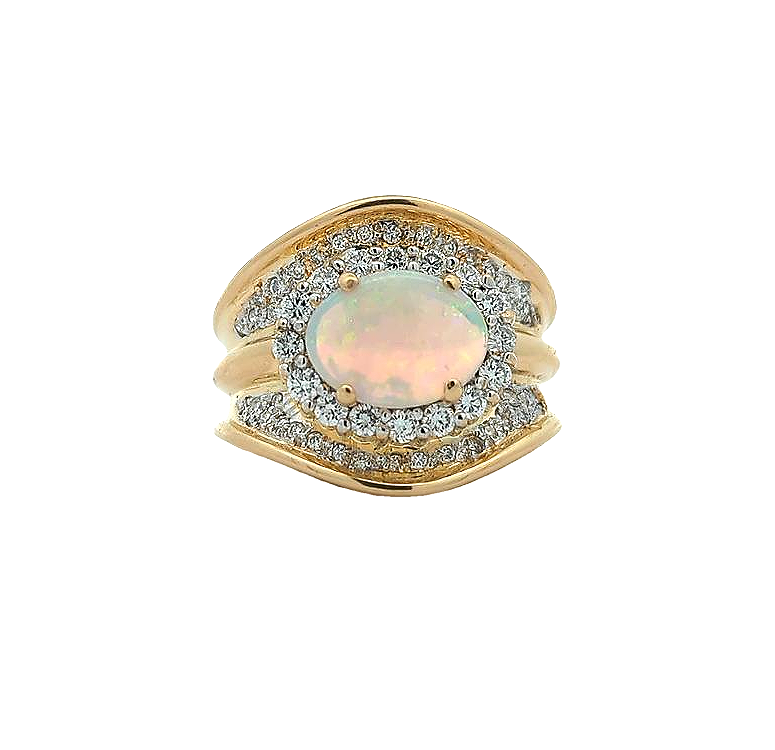 18KT Yellow Gold White Opal and 0.80ctw Diamond Estate Ring size 9