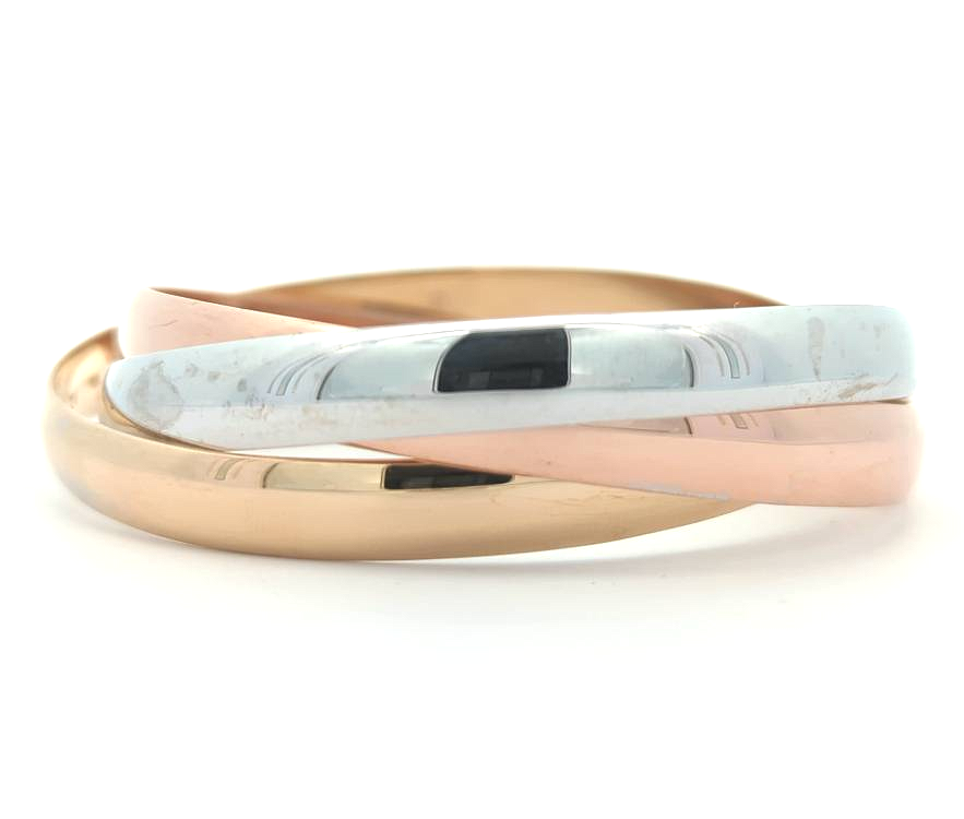 18KT Yellow, White and Rose Gold Estate Interlocking Bangle