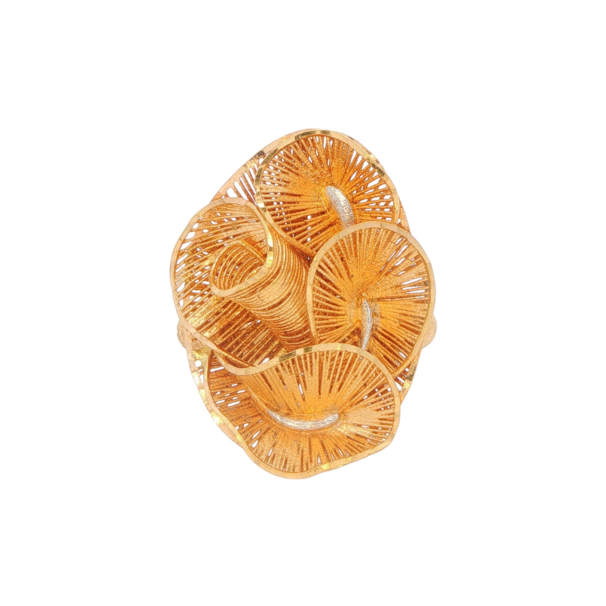 One stamped 21KT yellow gold with rhodium plating custom made flower ring with a high polish finish.