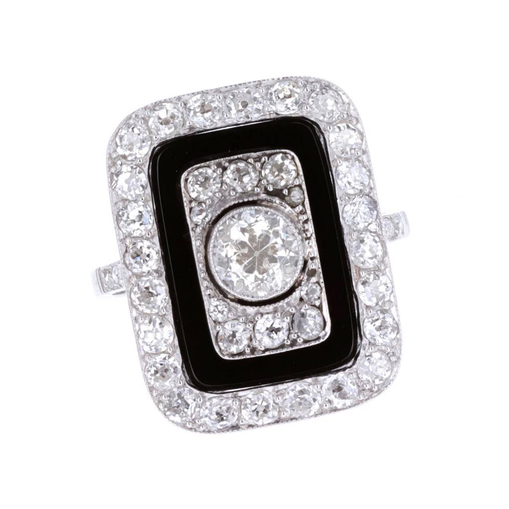 Platinum Onyx and 1.70ctw Diamond Estate Ring size 7