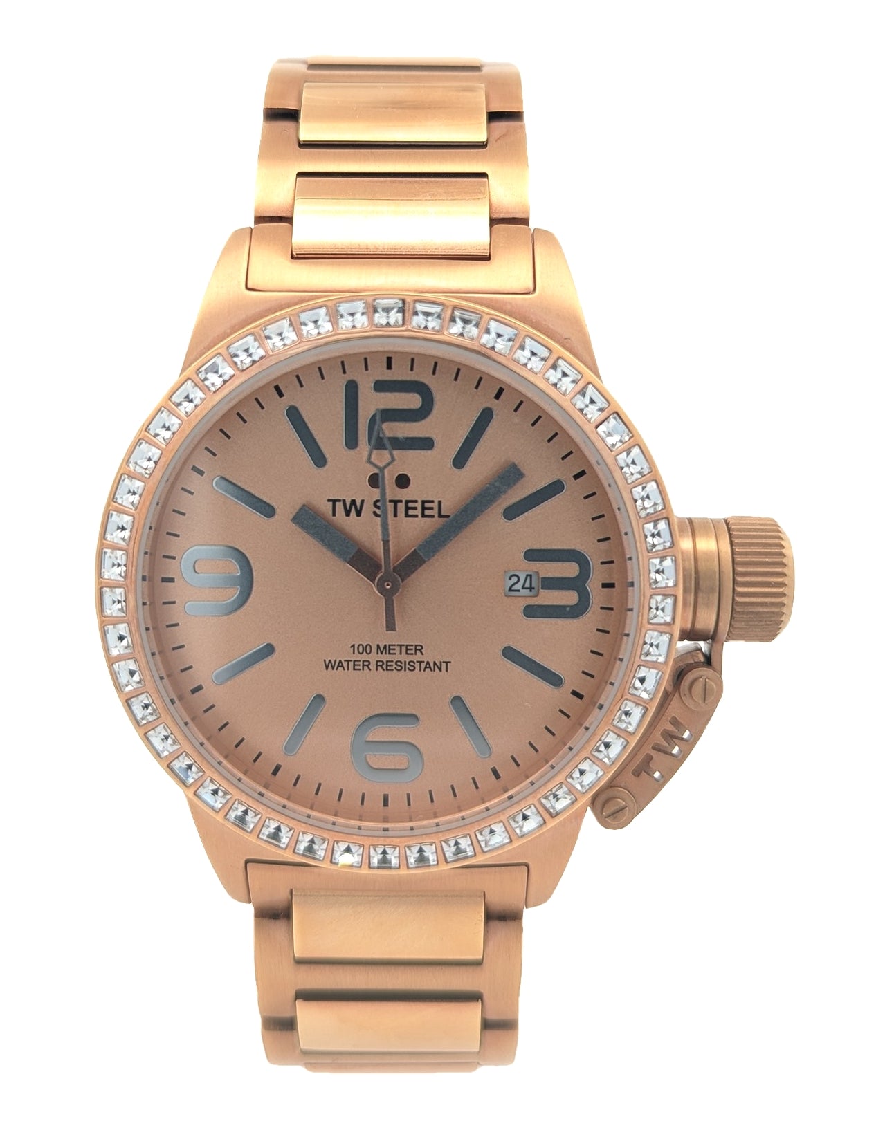 The TW Steel TW305A in a rose gold finish exudes a refined and luxurious aesthetic while maintaining the brand's signature bold presence. The 40mm stainless steel case is coated in a rich rose gold PVD finish, lending the watch a sophisticated yet robust appeal. The matching rose dial is adorned with luminous rose gold-tone indices and hands, enhancing legibility and adding a touch of elegance.